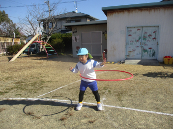 年長児は、フープに挑戦です。