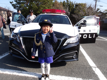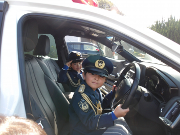 警察の制服を着せていただき、外ではパトカーをじっくり見せてもらいました。