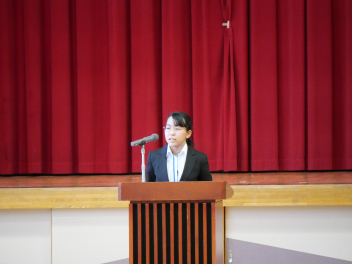3名の代表児童が、2学期に頑張ったことを発表しました。