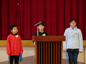 3名の児童が、今年の目標を立派に発表してくれました