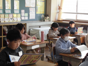 本を借りる前におみくじを引き、そのおみくじに書かれた番号の本を借ります。そうすると「しおり」をもらうことができます。15分休みや昼休みにはたくさんの子供たちが図書室に訪れ、うれしそうにおみくじを引く姿がみられました。これからもいろいろな種類の本をたくさん読んでいけるといいですね。