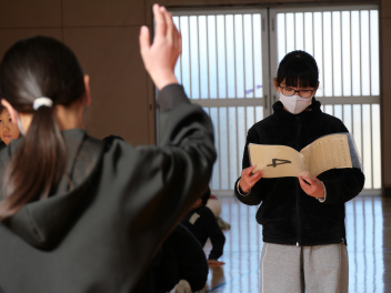 •  図書委員会主催の読書週間が11月25日(火)から始まりました。今年の読書週間は「おみくじ読書」です。図書室にはたくさんの種類の本があり、例えば社会に関する本は「3」、自然に関する本は「4」、絵本は「E」というように本には番号がふられています。図書委員会はいろいろな種類の本を読んでもらいたいと考え、おみくじ読書を考えました。