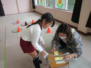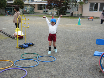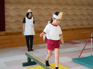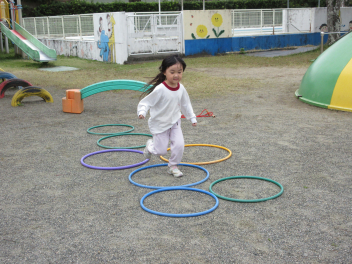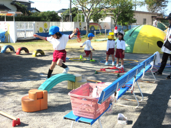 「たんぽぽ2」の保育室では、サーキット遊びで体を動かして遊べるよ