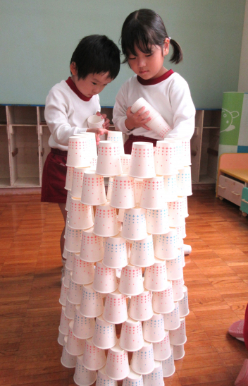「紙コップタワー」は、紙コップを積み上げてタワーを作りました
