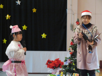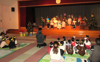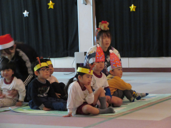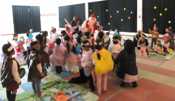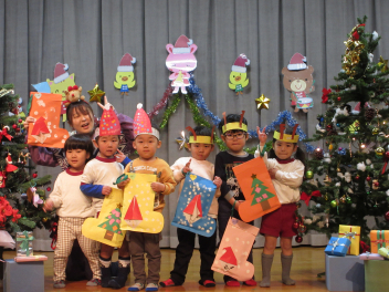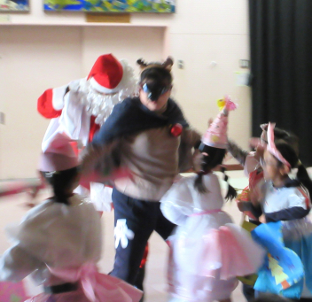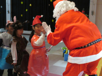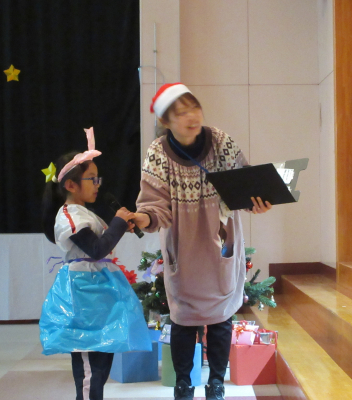 先生や子供たちは、サンタクロースやトナカイの衣装を身に付けて会に参加しましたよ