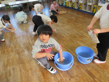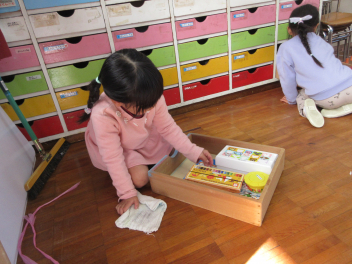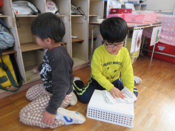 • 今日は、全学年で今まで遊んだ保育室の大掃除をしましたsmiley