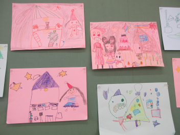 昨日サンタさんが幼稚園に来てくれて、嬉しかった様子が絵画から伝わってきますwink