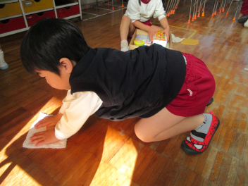 「汚れ発見」床もピカピカになると気持ちがいいね