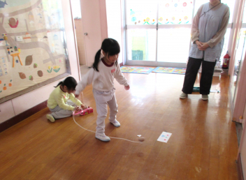 今回のサーキットには、縄跳び遊びにつながるよう、両足ジャンプを取り入れました