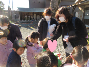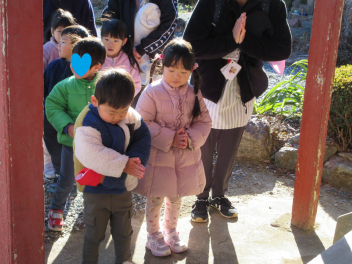 •  今日は、年少・年中さんは「中川寺」へ、年長さんは「善明寺」へ園外散歩へ出掛けましたwink
