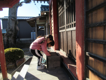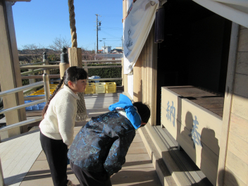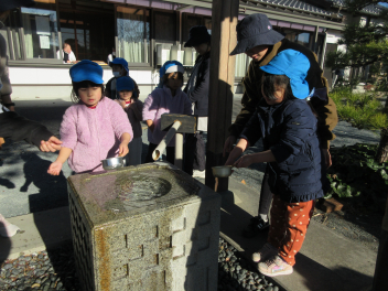 うめ組さんは、手を清めてから参拝をさせていただきました