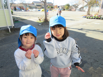 身支度を済ませたあとは、寒さに負けず戸外で元気いっぱい遊びましたsmiley