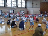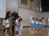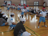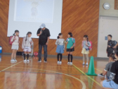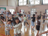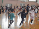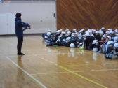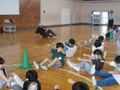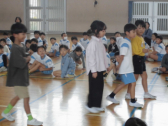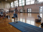 1・2年生の計測には、6年生が手伝いに来てくれました。あいにくの天候だったので、体育館で計測できる種目を行いました。