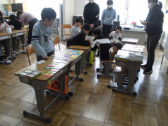 「本の福袋」では、図書室に並べられた「福袋」を持っていきます。袋の中には、図書委員の子供たちが選んだ「おすすめの本」が入っていて、その本を読むことができます。袋には、中の本のジャンルや読みやすさが表示されているので、自分が読みたいジャンルや読みやすさから福袋を選ぶことができるようです。