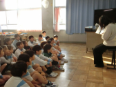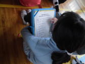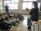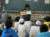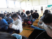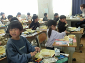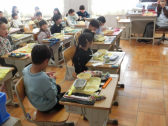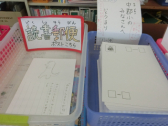 「読書郵便」は、本の紹介をはがきに書いてにこにこ館のポストに入れます。集まったはがきの中から何枚かを選んで、図書委員の子供たちが放送で紹介します。