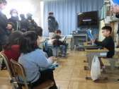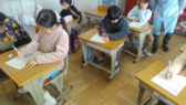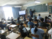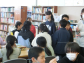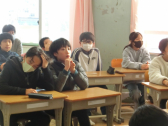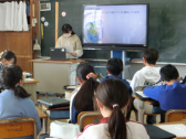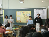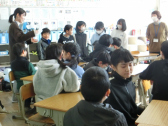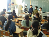 2人から、中学校の校舎や生活のこと等の発表を聞きました。