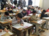 教室での算数科の学習はもう終わっていて、それぞれのクラスで「100マス計算」で練習をしてきました。