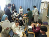 • 1月30日(金)4校時に、中郡中学校の1年生2人が小学校のたんぽぽ・ひまわり学級に来てくれました。