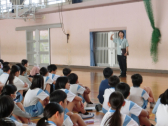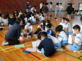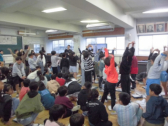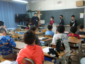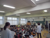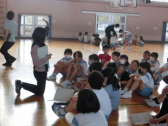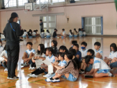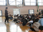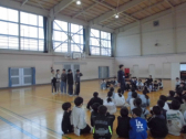 中郡小学校の子供たちに向けての、最後のメッセージ…。子供たちも真剣に耳を傾けていました。