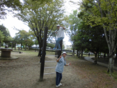 美薗中央公園では、元気よく体を動かしたりどんぐりを拾ったりしました。