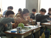 題材は「自然の物」で、果物や野菜、花などを一人ひとり用意してきました。