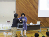アイロンや石臼を実際に使ってみて、今の道具との違いを体験することができました。