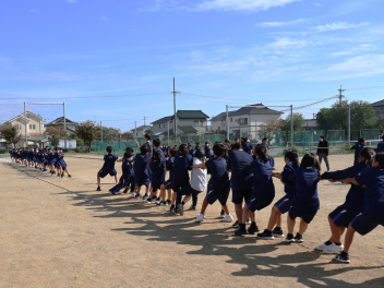 貴重な晴れ間を活かして、1年生は「綱引き」、2年生は「いろんな玉転がさないリレー」、3年生は「長縄跳び」の練習に取り組みました。