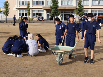 特別な仕事のない生徒も、グラウンドの石を拾って環境を整えるなど、全員で協力して明日の本番に備えました。