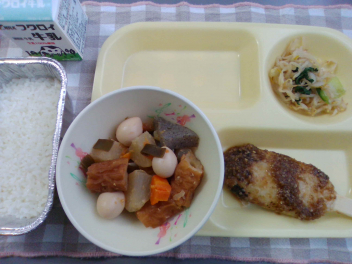 ごはん 牛乳 おでん おひたし 五平餅 でした。