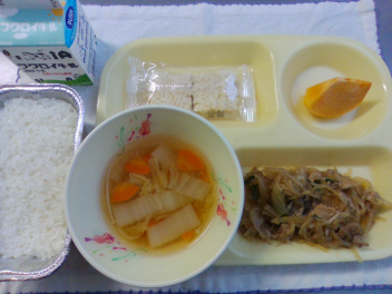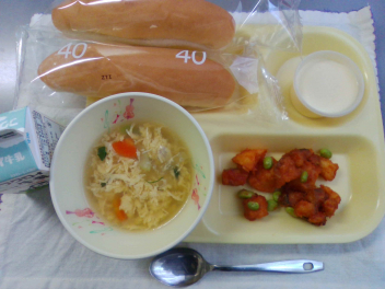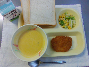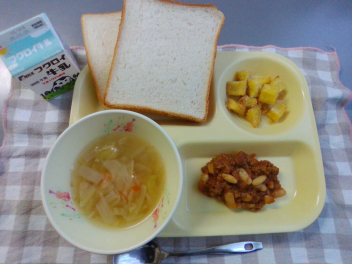 食パン 牛乳 チリコンカン ベジタブルスープ キャラメルポテト でした。