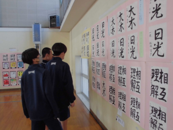生徒は学年ごとに時間を分けて作品を鑑賞しました。また、保護者の皆様には、決められた時間にご来場いただき、ご鑑賞いただきました。