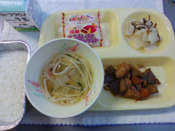 ごはん 牛乳 浜納豆煮 セロリうどん汁 大根の浅づけ さつまいもと栗のタルト でした。