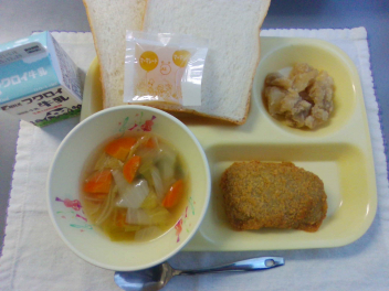 食パン 牛乳 マーマレード 黒はんぺんチーズフライ じゃがいもソース煮 白菜スープ でした。