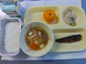 ごはん 牛乳 いわしの浜納豆煮 変わりづけ のっぺい汁 みかん でした。