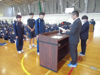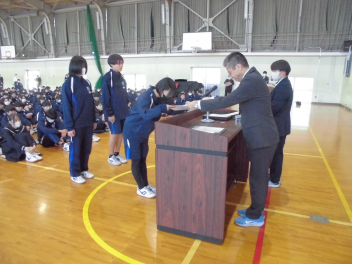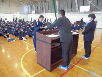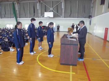 式の前には表彰が行われ、理科の自由研究や部活動、各種作文コンテストなど、多くの分野における生徒の活躍が披露されました。