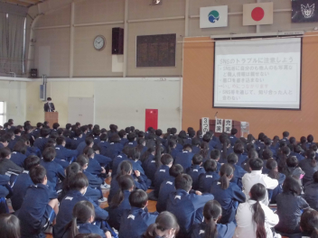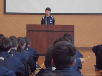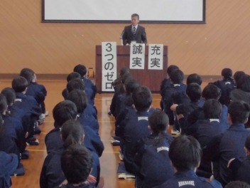 また、「誠実に生きること」や、事件・事故・いじめ・トラブルをなくす「3つのゼロ」を意識して冬休みを過ごすようにとのお話がありました。