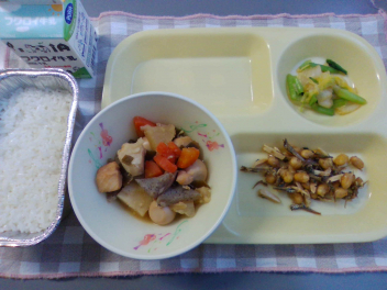 ごはん 牛乳 あじの南部揚げ もやしのおかか炒め いもこ汁 でした。