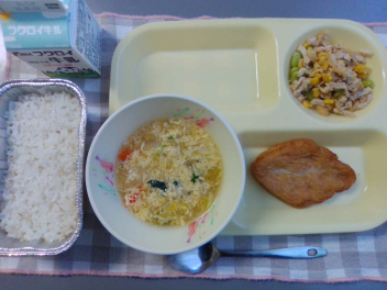 麦入りごはん 牛乳 こぎつねごはん 木の葉揚げ 卵入り白菜汁 でした。