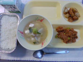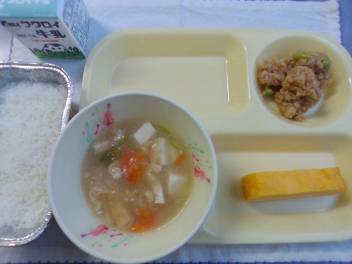 ごはん 牛乳 厚焼き卵 じゃがいものそぼろ煮 みぞれ汁 でした。