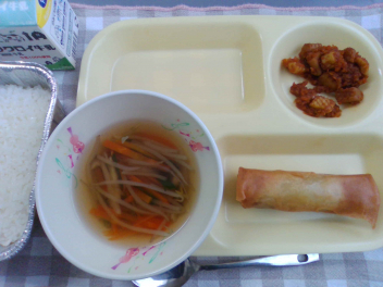 ごはん 牛乳 春巻 いかのチリソース煮 中華スープ でした。