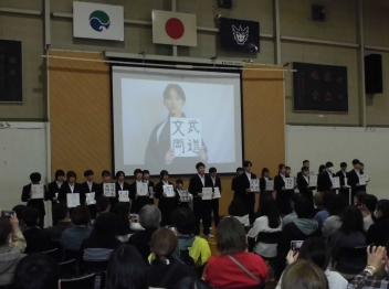 立志式では、生徒一人ひとりが色紙に「立志の誓い」を書き、保護者の皆様の前で自分の決意をしっかりと発表しました。