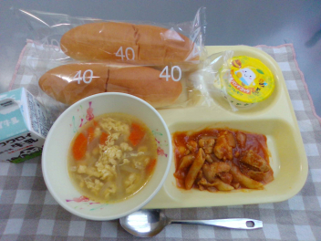 ロールパン 牛乳 カチャトーラ イタリアンスープ 豆乳パンナコッタはちみつレモンソース でした。