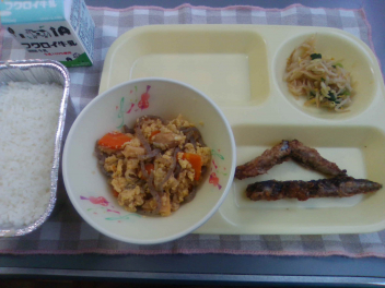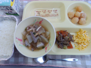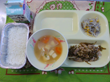 ごはん 牛乳 豚肉と昆布の煮つけ もやしの炒めもの 実だくさん汁 でした。