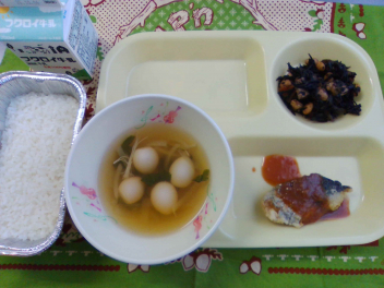 ごはん 牛乳 さわらのみそあんかけ ひじきの炒め煮 うずら卵のすまし汁 でした。
