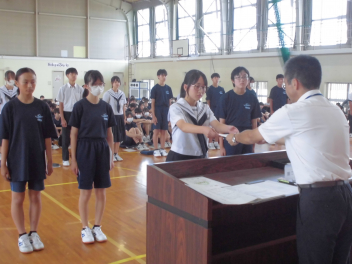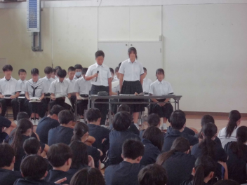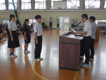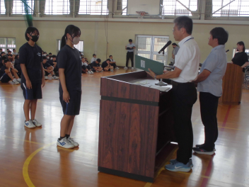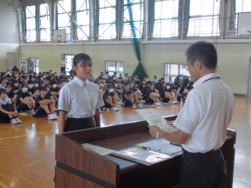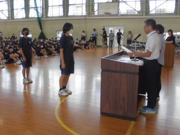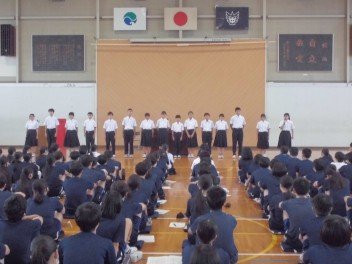 9月29日(月)、任命式と生徒総会が行われました。式に先立ち、表彰も行われました。