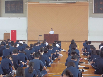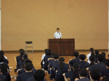 校長先生からは、「リーダーは、生徒全員が充実した学校生活を送れるような取り組みをしていってください」「生徒一人ひとりが、学校の作り手としての意識を持っていきましょう」との言葉をいただきました。