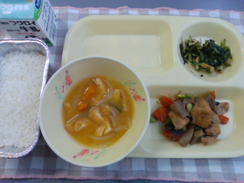 ごはん 牛乳 筑前煮 ほうれん草のアーモンド炒め かぼちゃのみそ汁 でした。