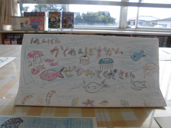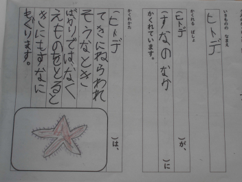 • 1年生が国語科「うみのかくれんぼ」で学習したことをもとに、「かくれんぼずかん」を作りました。