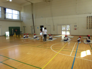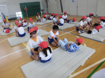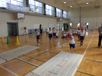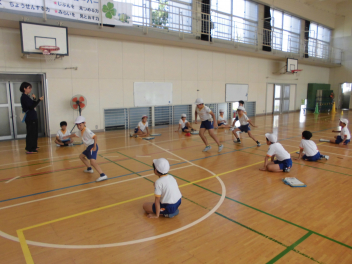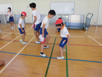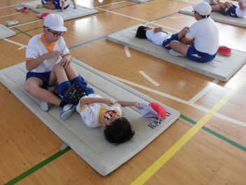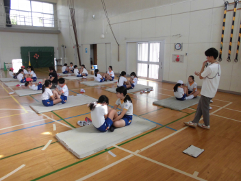 1年の体育館種目は6年生が測定の補助をしてくれました。