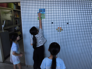 • 各クラスのTTY係が交換したキャップを完成図を見ながらボードにつけていきます。